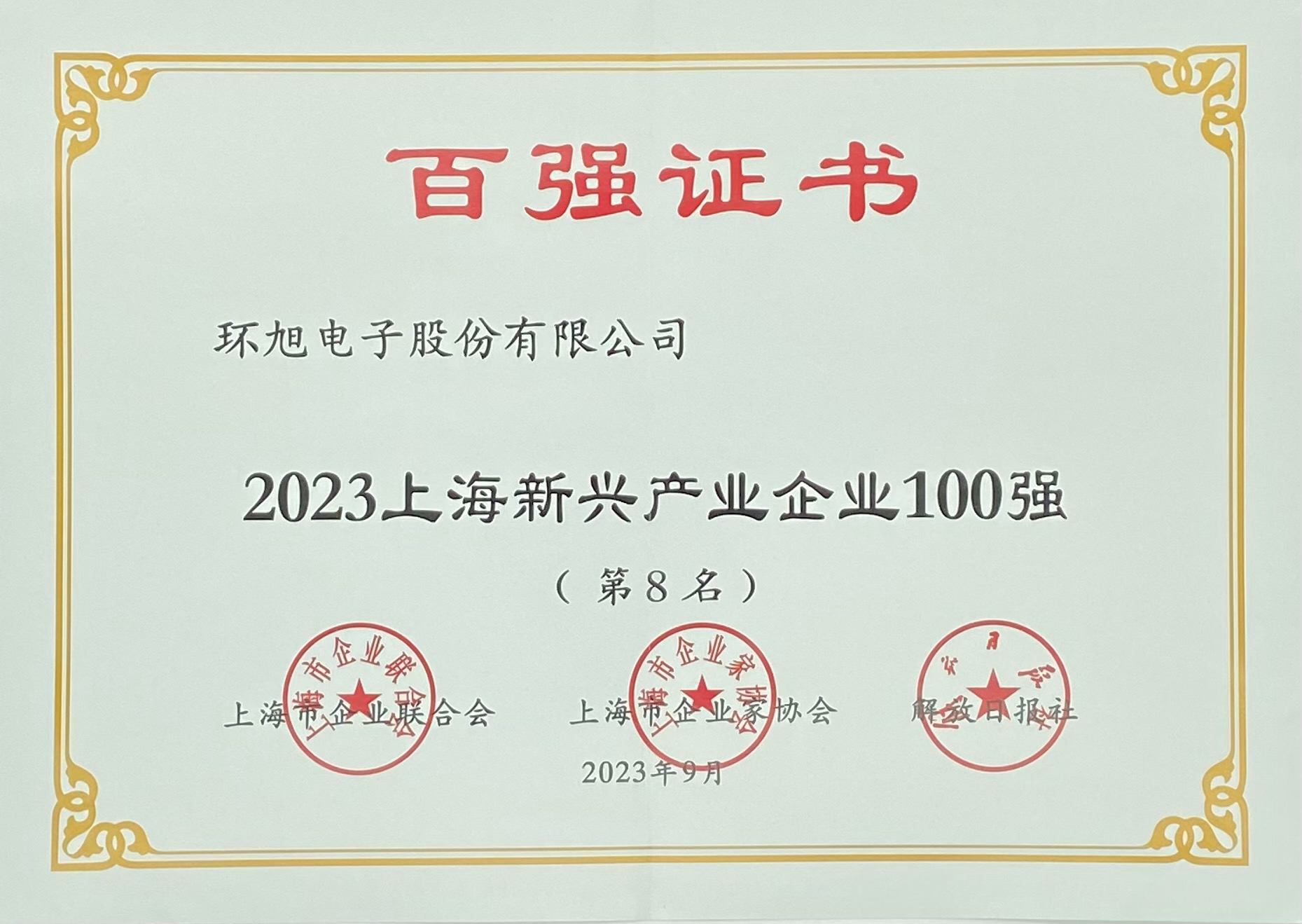 2023上海新兴产业企业100强(第8名)