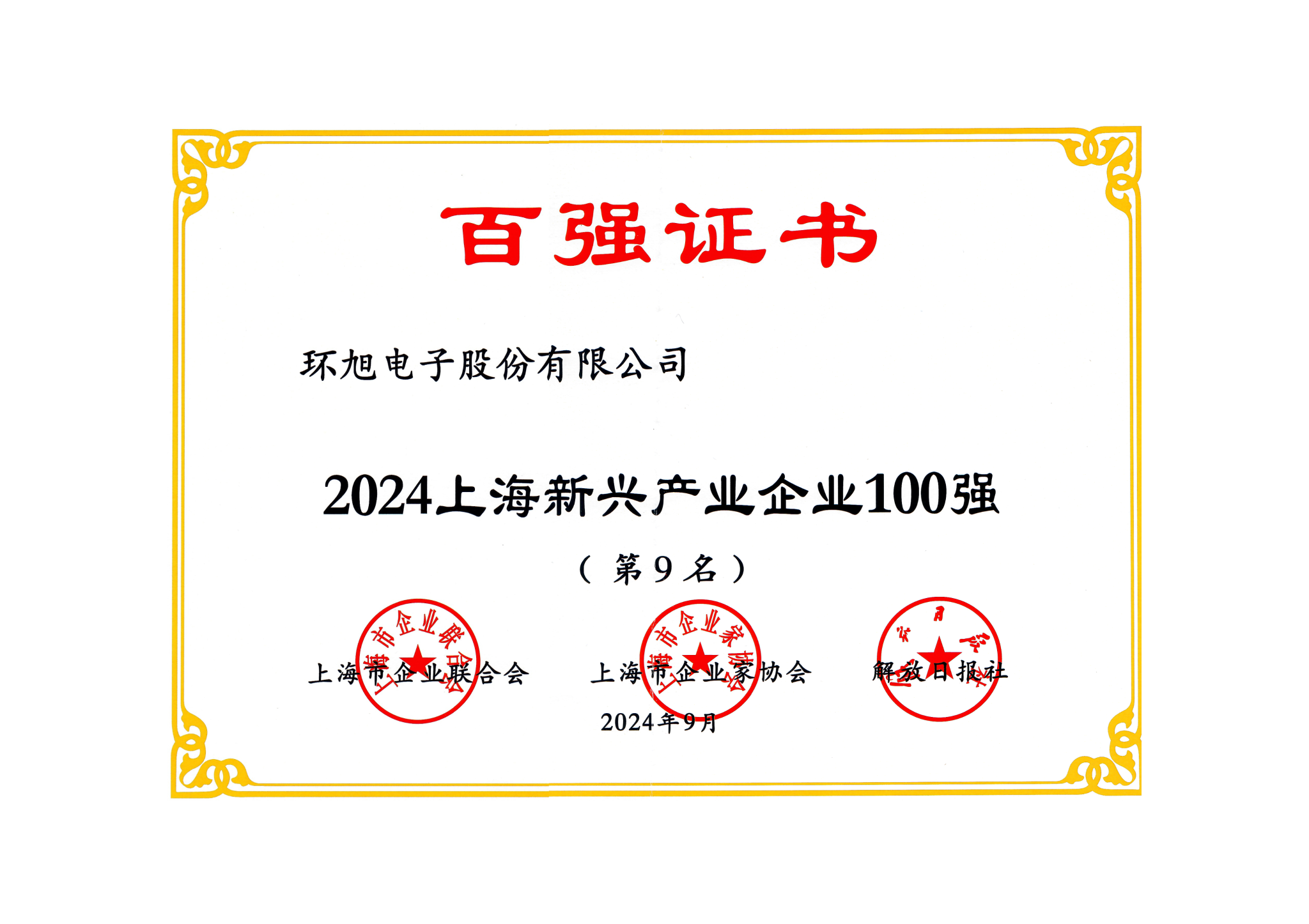 "AG百家乐官方网站" 2024上海新兴产业企业100强 第9名
