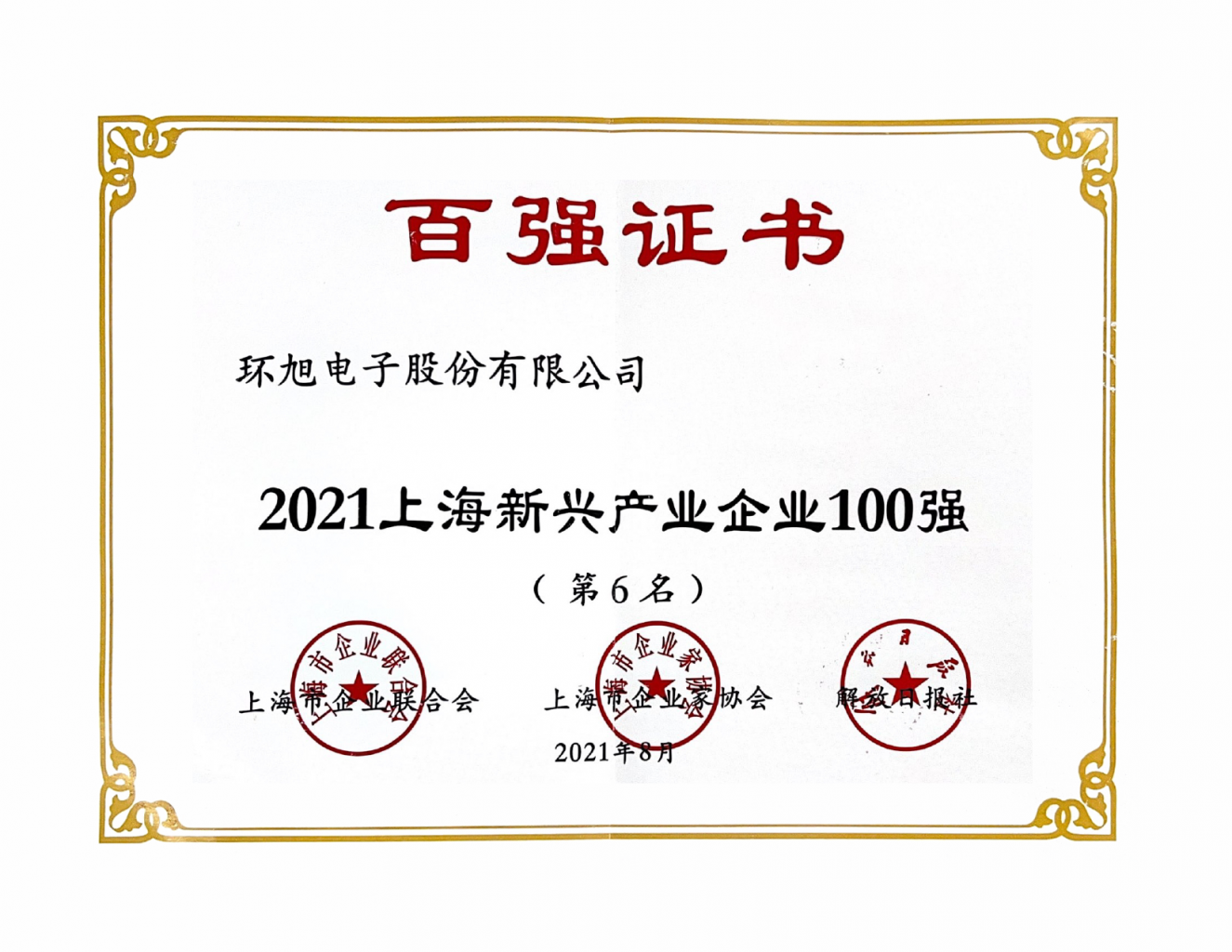 2021上海新兴产业企业100强(第6名)