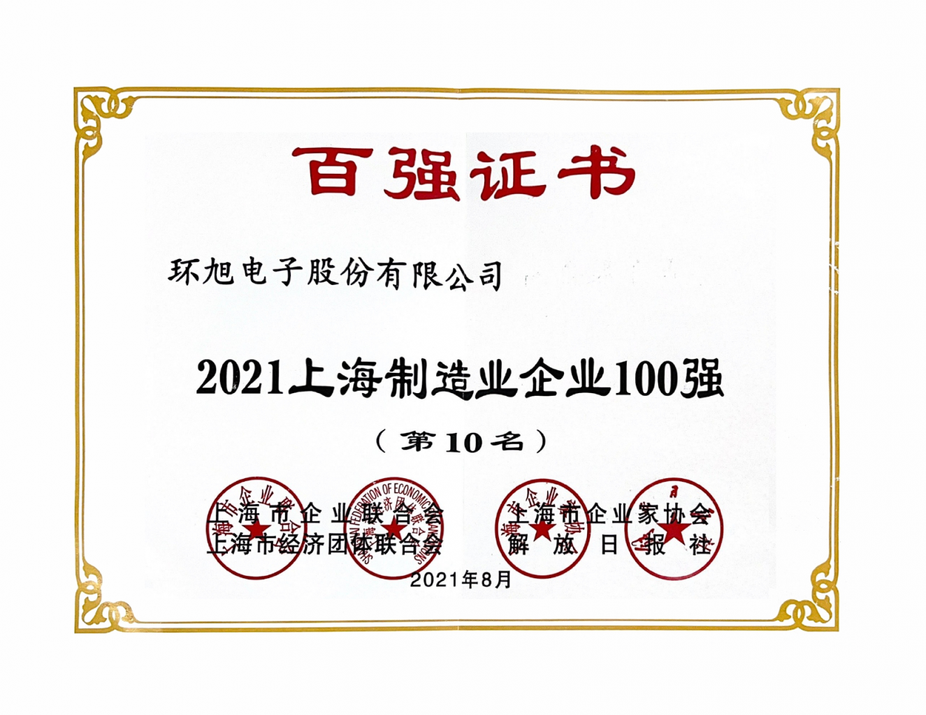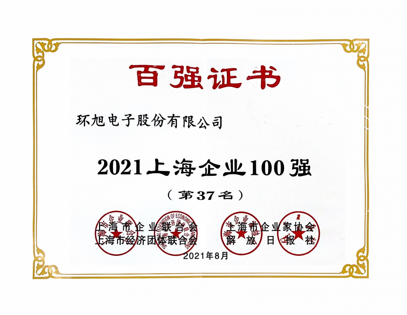 "AG真人百家乐官方网站" 2021上海企业100强(第37名)