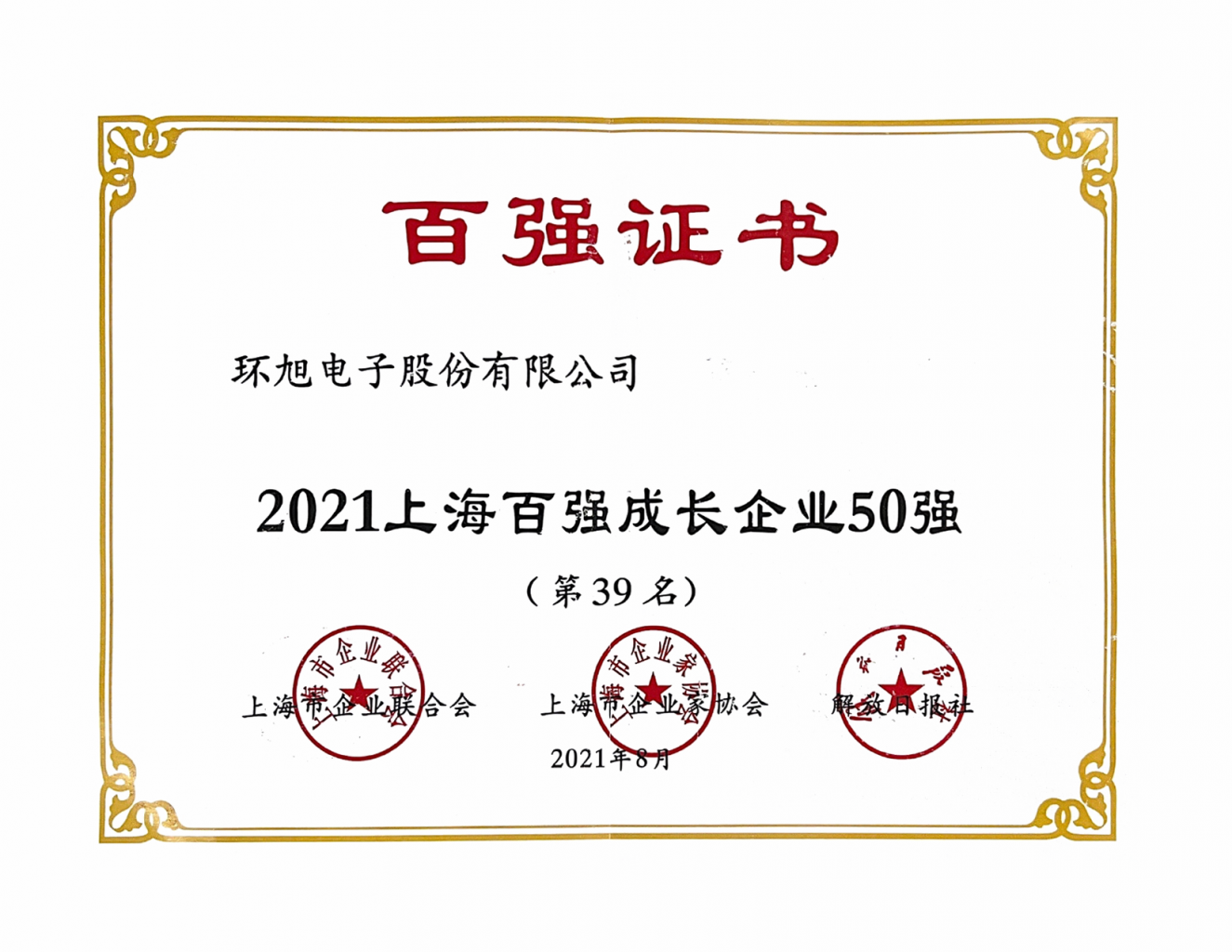 2021上海百强成长企业50强(第39名)